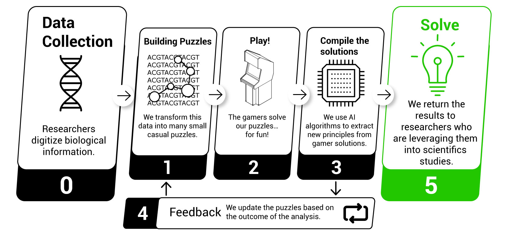 We develop artificial intelligence systems that combine the intuition of humans with the speed of computers to solve complex problems in biology and genomics. Our technology aims to tap into the vast reservoir of problem-solving skills acquired by video gamers while maintaining the entertaining experience. Our data and software are freely accessible.