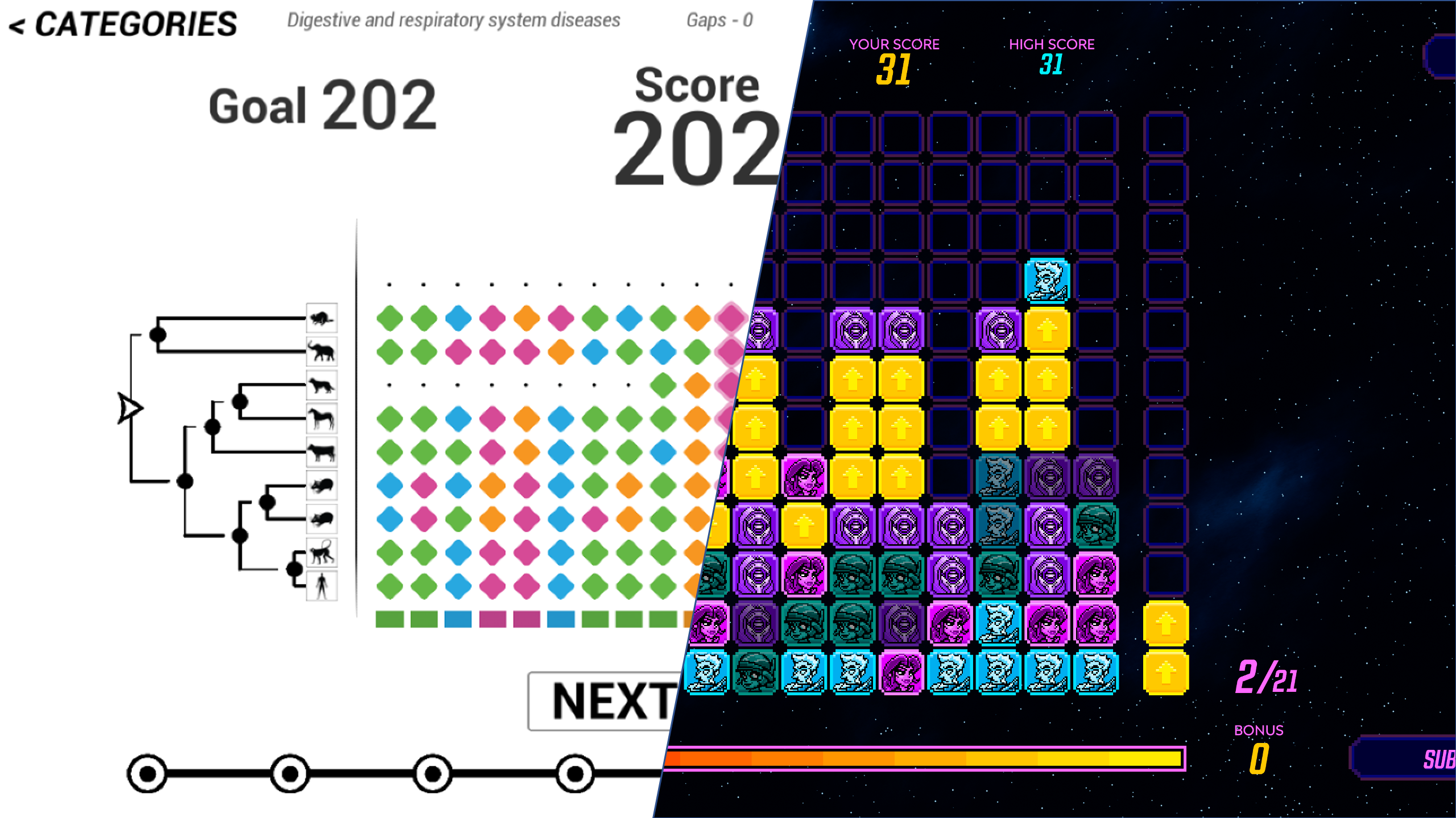 Ten year ago, we launched our first citizen science game, Phylo DNA Puzzles, an online casual puzzle game that can be freely played at https://phylo.cs.mcgill.ca. As Borderlands Science, the solutions collected from Phylo help us to analyze DNA sequences and reveal similarities and differences the genomes of various organisms. But there are a couple of key differences.